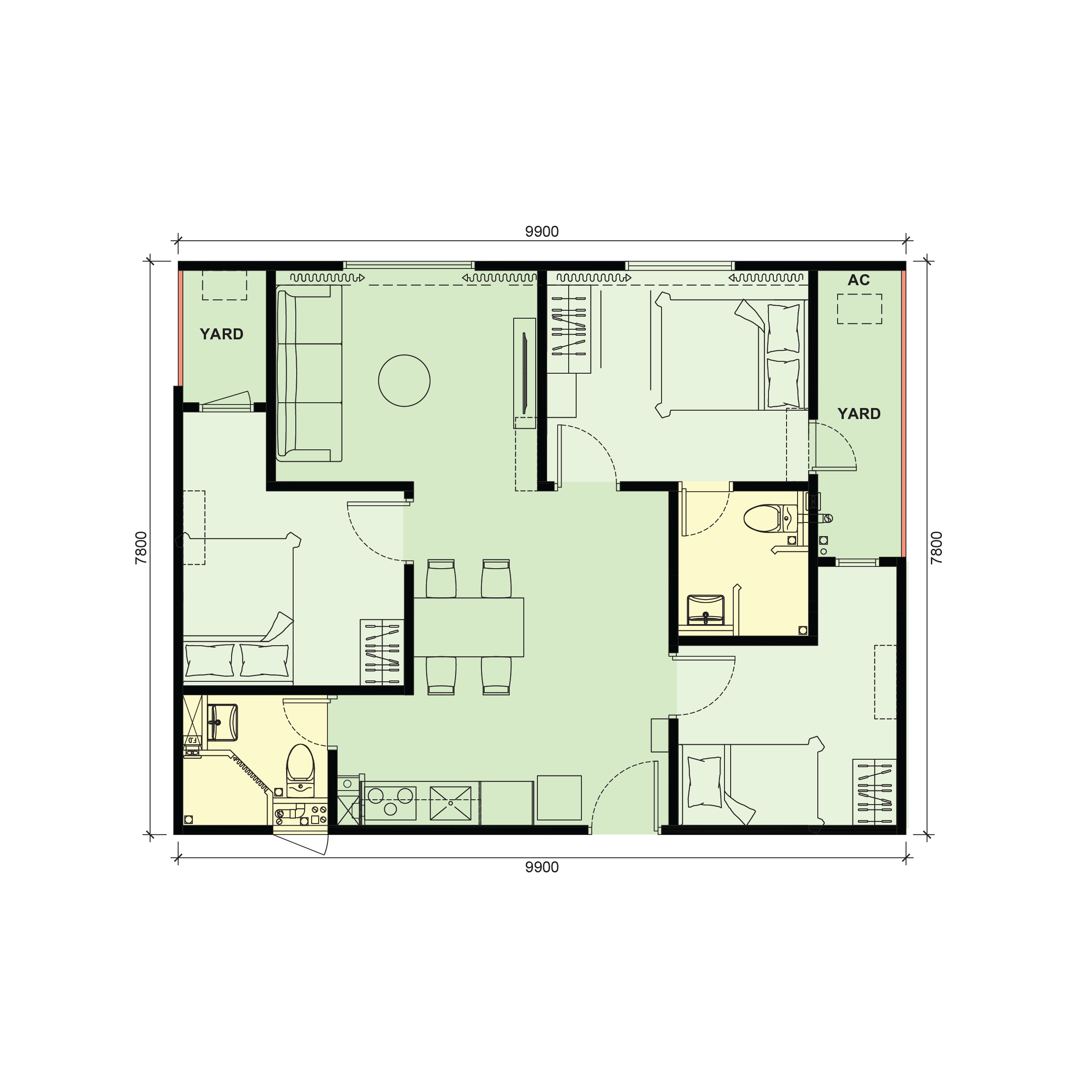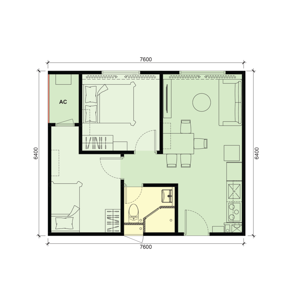 The epitome of having the versatility of space right at your fingertips, this apartment features a spacious living and dining area, with ample room to grow. Ideal for those who desire a bigger space to accommodate the size of a growing family, this apartment also features contemporary furniture and comes equipped with electrical fittings.